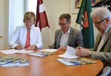 Ventspils Valsts 1.ģimnāzijas direktore Pārsla Kopmane, Ventspils pilsētas domes Izglītības pārvaldes vadītājs Aldis Slavinskis un Ventspils augstskolas rektora vietas izpildītājs Kārlis Krēsliņš ceturtdien parakstīja...