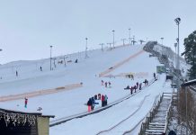Slēpošanas kalnā uzsākta sniega pūšana